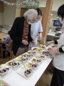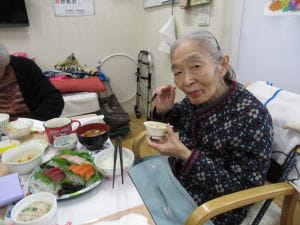 12月イベント 忘年会 🎉 2025年12月27日 最終更新日時 : 2026年2月13日 柏木管理者 利用者アンケートで「お刺身が食べたい」という声が多く寄せられたため、忘年会イベントではお刺身をご提供しました🐟✨ 一年を振り返りながら、撮りためていた写真をモニターに映し、思い出話でスタッフと一緒に大いに盛り上がりました。 また、スイーツバイキングでは、お好きなものを食べたい分だけお皿に取っていただきました🍰 写真をご覧いただければ分かる通り、皆さんとても素敵な笑顔です😊